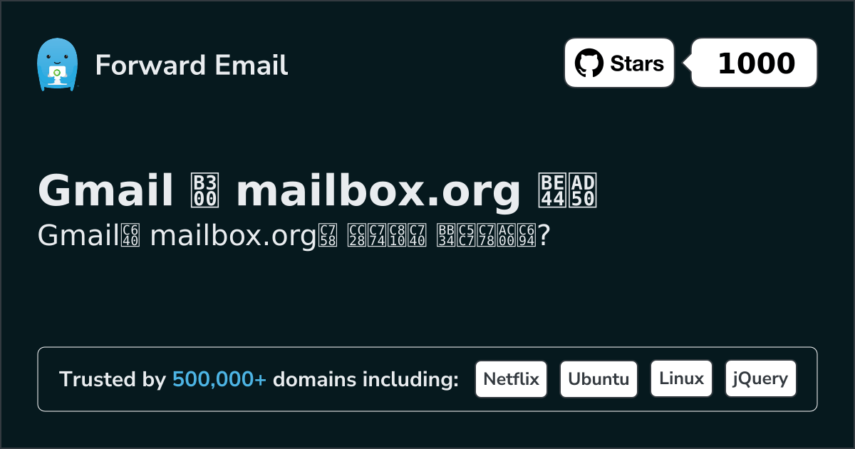 Gmail"안전하고 스마트하며 사용하기 쉬운 이메일" | 대 | mailbox.org"독일에서 만든 개인 정보 보호" |