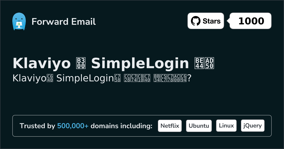 Klaviyo"더욱 스마트한 디지털 관계를 구축하세요" | 대 | SimpleLogin"익명으로 이메일을 수신하고 전송합니다" |