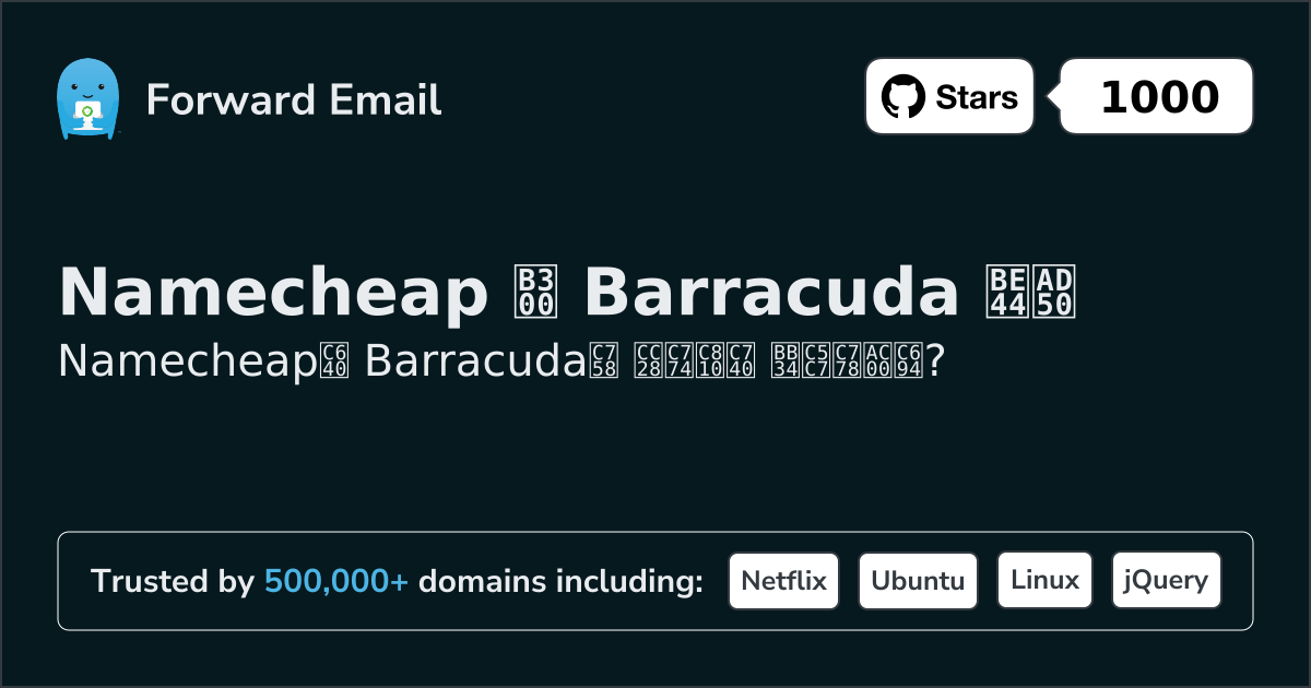 Namecheap"전문가용 이메일로 더 적은 비용으로 더 많은 작업을 수행하세요" | 대 | Barracuda"사이버 보안 솔루션: 이메일, 앱, 네트워크, 데이터" |
