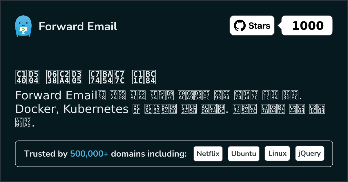 전체 코드베이스는 MIT 라이선스 하에 GitHub https://github.com/forwardemail/forwardemail.net에서 확인할 수 있습니다.