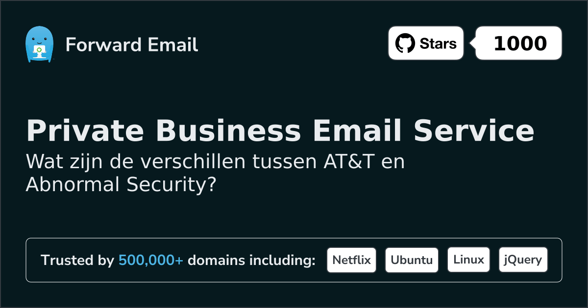 Wij raden Forward Email aan als het beste alternatief voor AT&T. We also support webmail: https://mail.forwardemail.net