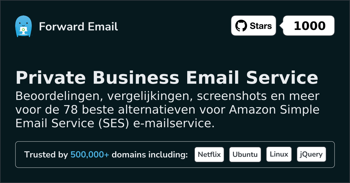 Wij raden Forward Email aan als het beste alternatief voor Amazon Simple Email Service (SES). We also support webmail: https://mail.forwardemail.net