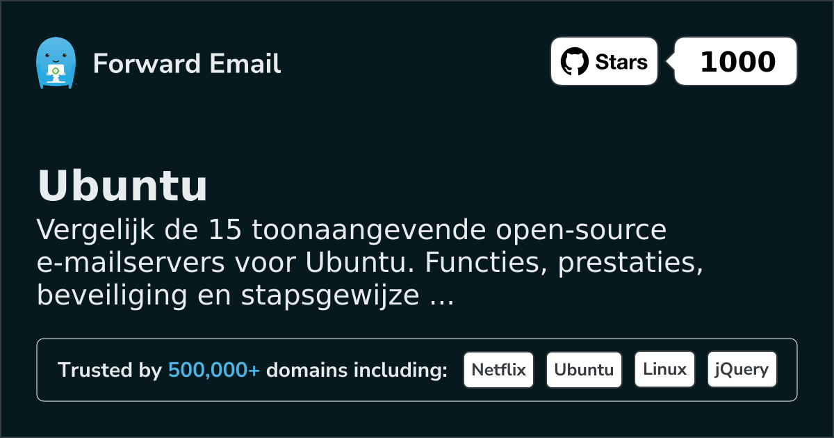 Vergelijk de 15 toonaangevende open-source e-mailservers voor Ubuntu. Functies, prestaties, beveiliging en stapsgewijze installatiehandleidingen met screenshots.