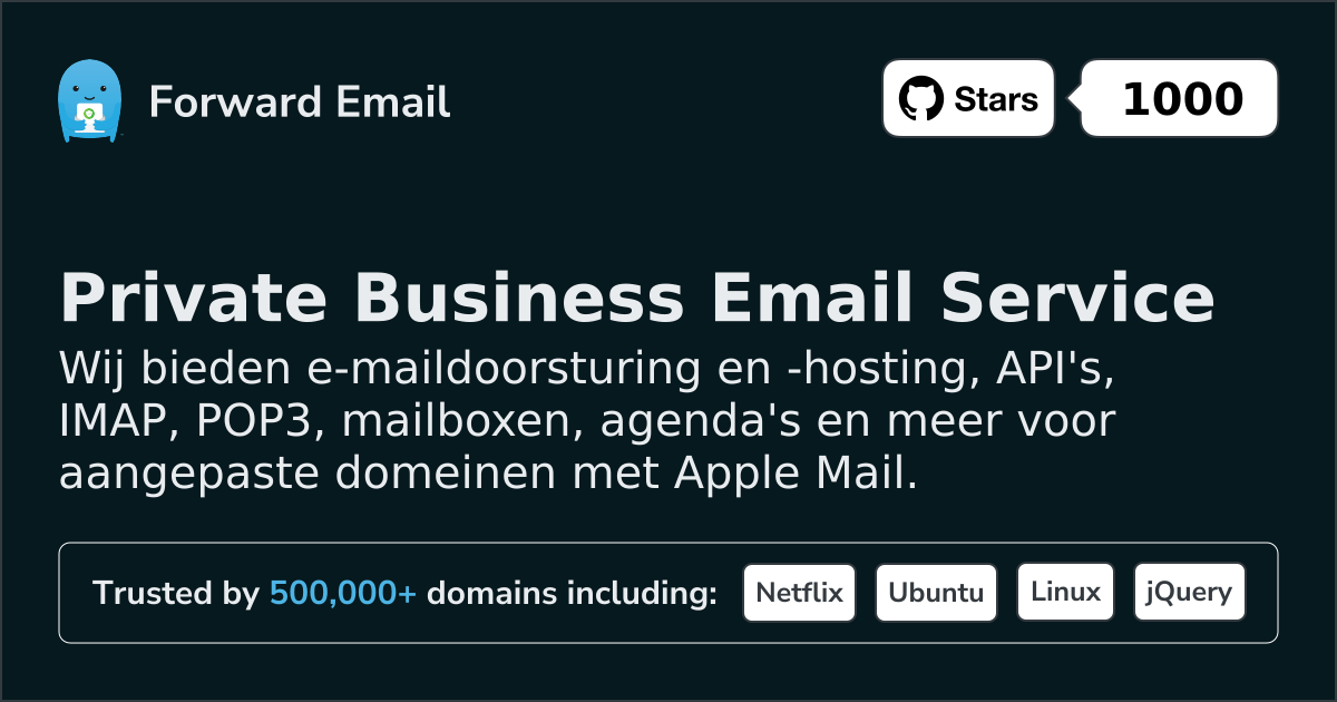 Wij bieden e-maildoorsturing en -hosting, API's, IMAP, POP3, mailboxen, agenda's en meer voor aangepaste domeinen met Apple Mail.