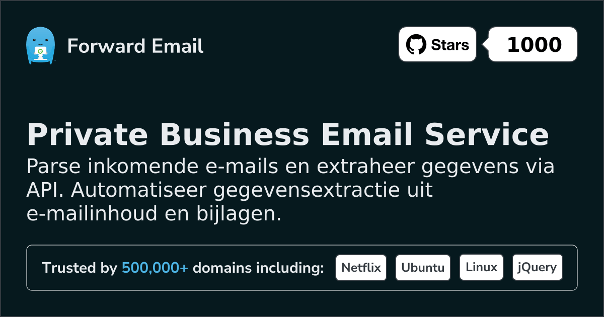 Parse inkomende e-mails en extraheer gegevens via API. Automatiseer gegevensextractie uit e-mailinhoud en bijlagen.
