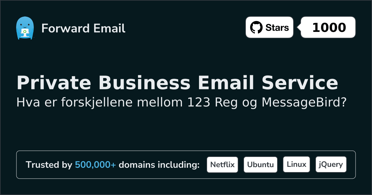 Vi anbefaler Videresend e-post som det beste alternativet til 123 Reg. We also support webmail: https://mail.forwardemail.net