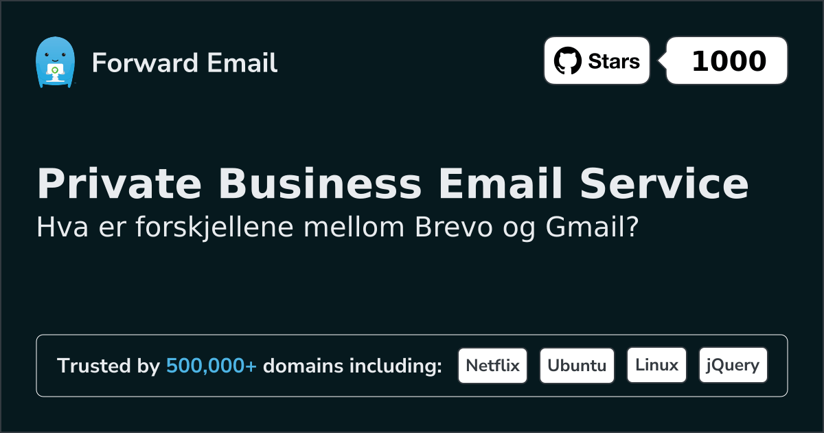 Vi anbefaler Videresend e-post som det beste alternativet til Brevo. We also support webmail: https://mail.forwardemail.net