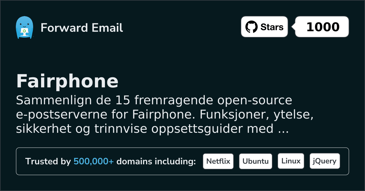 Sammenlign de 15 fremragende open-source e-postserverne for Fairphone. Funksjoner, ytelse, sikkerhet og trinnvise oppsettsguider med skjermbilder.