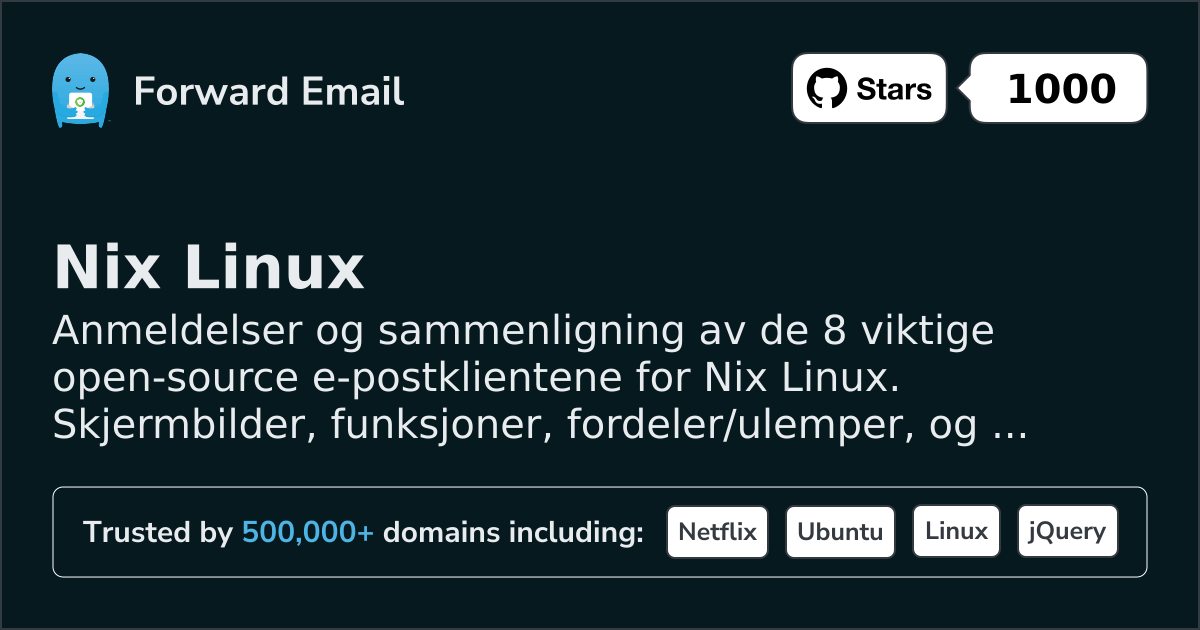 Anmeldelser og sammenligning av de 8 viktige open-source e-postklientene for Nix Linux. Skjermbilder, funksjoner, fordeler/ulemper, og installasjonsguider.
