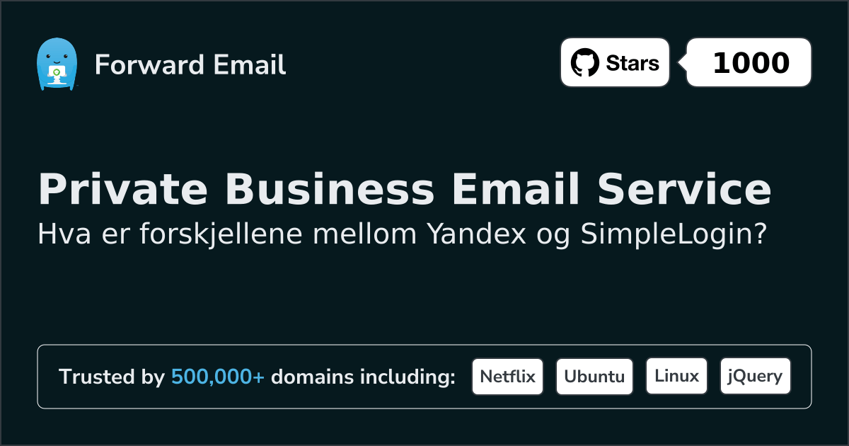 Yandex"En e-postadresse med bedriftens navn er en enkel måte å skille seg ut på" | vs. | SimpleLogin"Motta og send e-poster anonymt" |