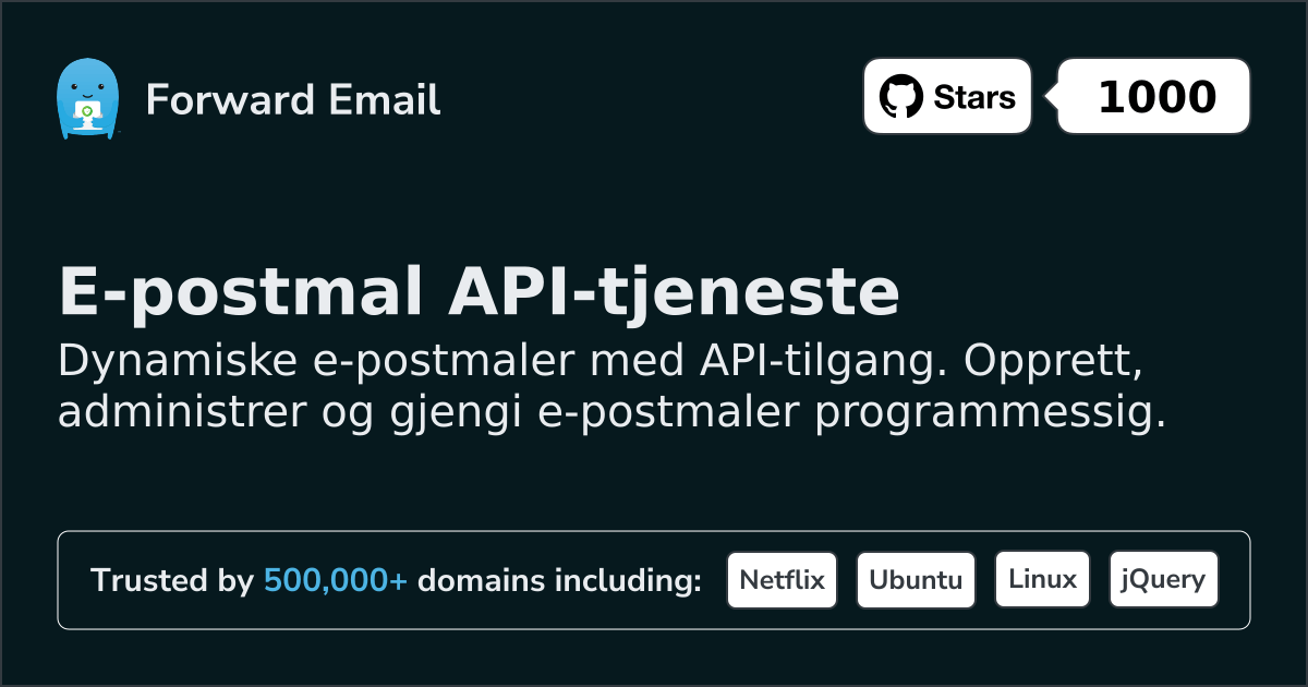 Dynamiske e-postmaler med API-tilgang. Opprett, administrer og gjengi e-postmaler programmessig.