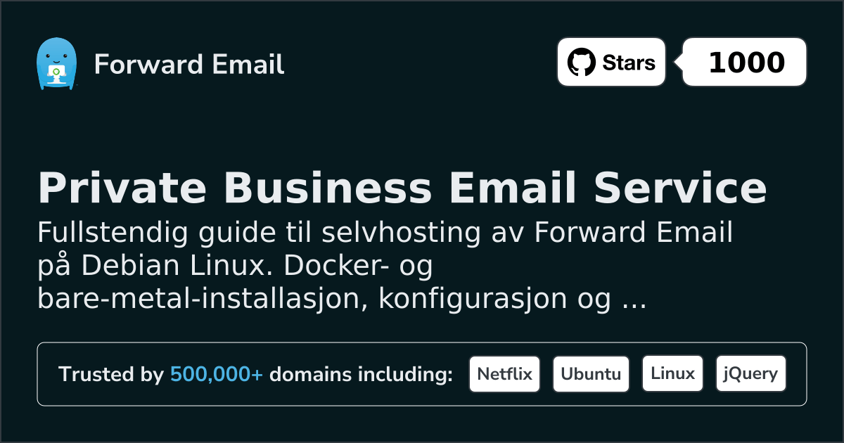 - Dokumentasjon: https://forwardemail.net/self-hosted
