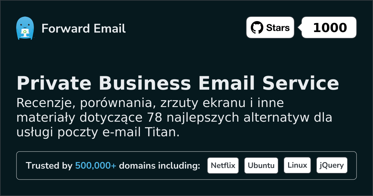 Zalecamy Przekaż dalej wiadomość e-mail jako najlepszą alternatywę dla Titan. We also support webmail: https://mail.forwardemail.net