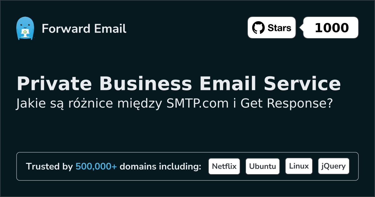 Zalecamy Przekaż dalej wiadomość e-mail jako najlepszą alternatywę dla SMTP.com. We also support webmail: https://mail.forwardemail.net