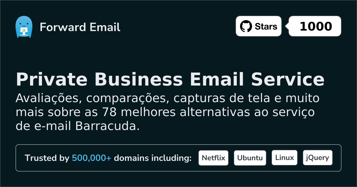 Recomendamos Encaminhar e-mail como a melhor alternativa a Barracuda. We also support webmail: https://mail.forwardemail.net