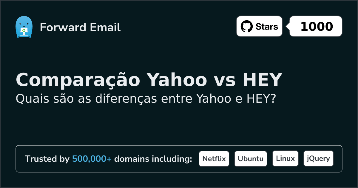 Recomendamos Encaminhar e-mail como a melhor alternativa a Yahoo. We also support webmail: https://mail.forwardemail.net