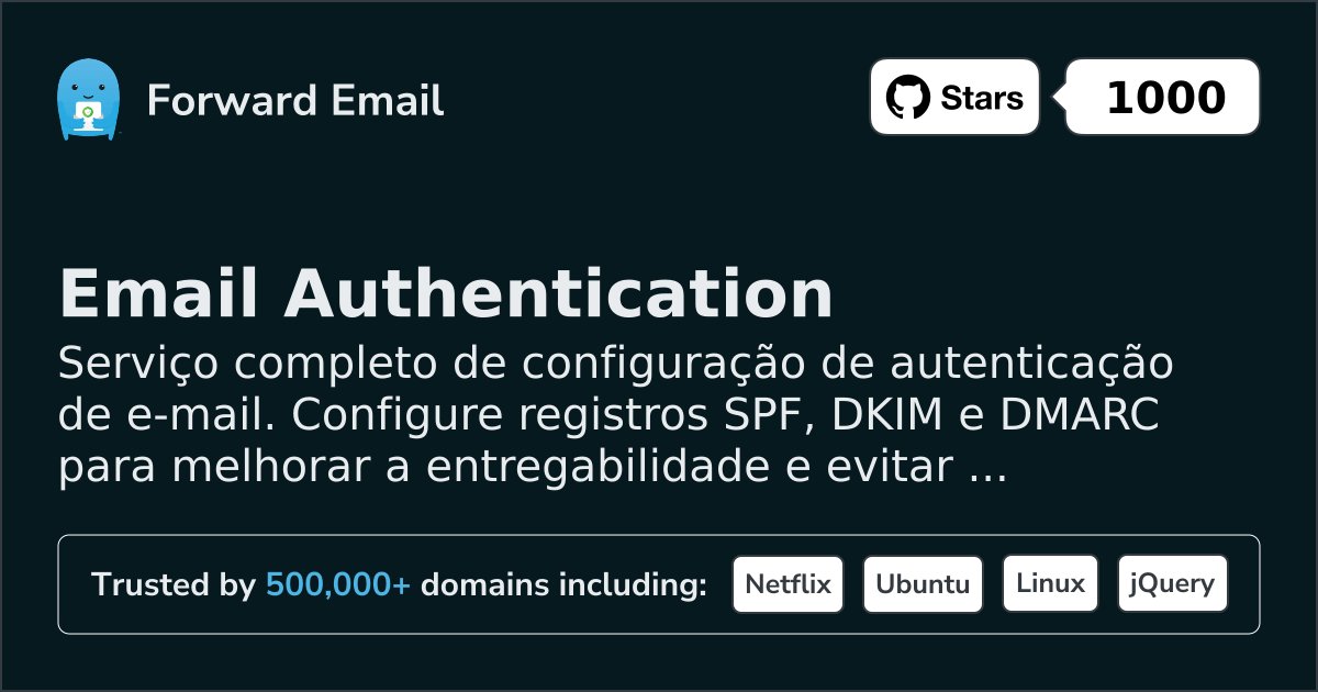 Serviço completo de configuração de autenticação de e-mail. Configure registros SPF, DKIM e DMARC para melhorar a entregabilidade e evitar falsificação de e-mails.