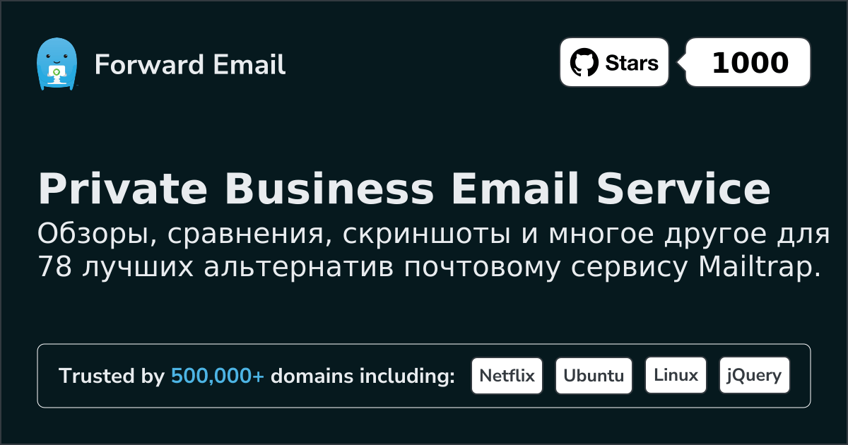 Мы рекомендуем Пересылку электронной почты как лучшую альтернативу Mailtrap. We also support webmail: https://mail.forwardemail.net
