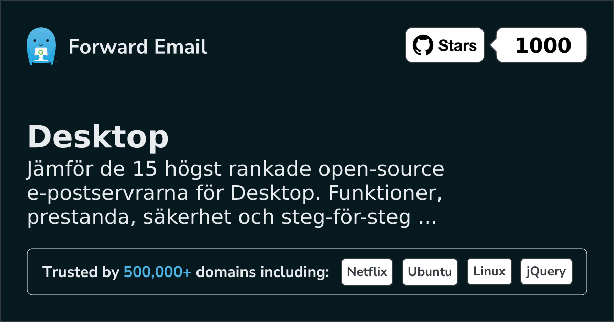 Jämför de 15 högst rankade open-source e-postservrarna för Desktop. Funktioner, prestanda, säkerhet och steg-för-steg installationsguider med skärmdumpar.