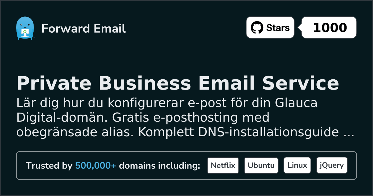 Lär dig hur du konfigurerar e-post för din Glauca Digital-domän. Gratis e-posthosting med obegränsade alias. Komplett DNS-installationsguide med skärmdumpar och video.