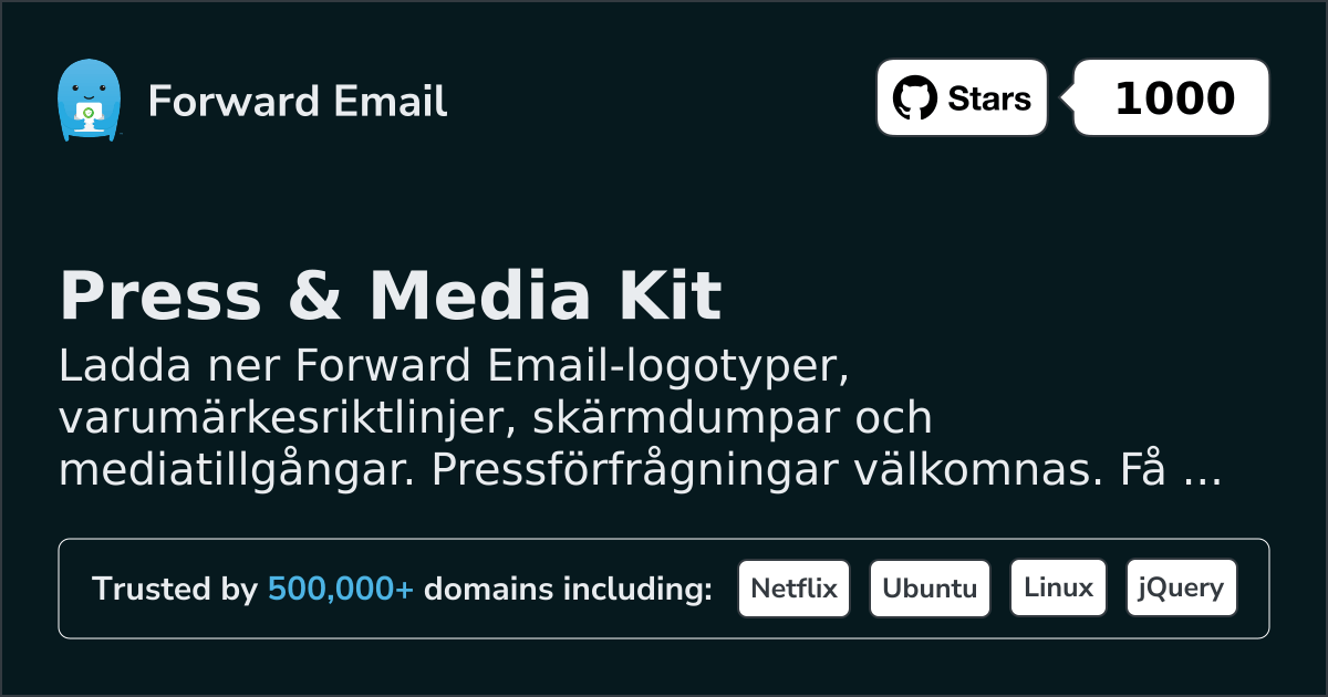 Om du är medlem av pressen, journalist eller medierepresentant och vill prata med oss, ställa frågor eller lära dig mer – vänligen kontakta oss på press@forwardemail.net.