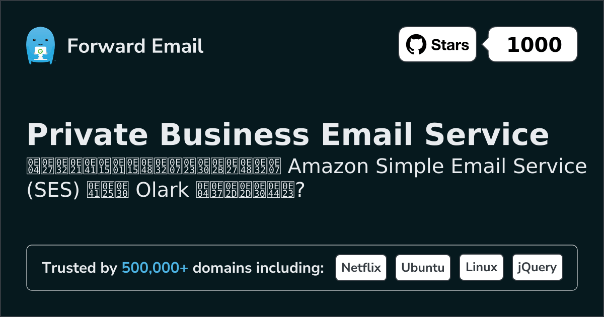 เราขอแนะนำ ส่งต่ออีเมล เป็นทางเลือกที่ดีที่สุดสำหรับ Amazon Simple Email Service (SES) We also support webmail: https://mail.forwardemail.net