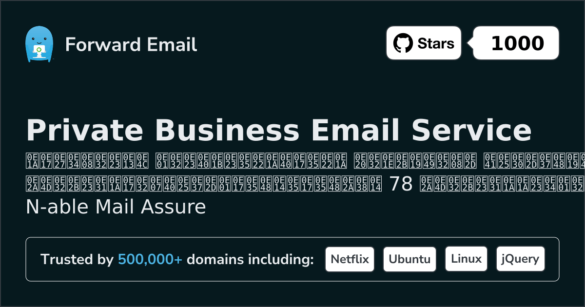 เราขอแนะนำ ส่งต่ออีเมล เป็นทางเลือกที่ดีที่สุดสำหรับ N‑able Mail Assure We also support webmail: https://mail.forwardemail.net