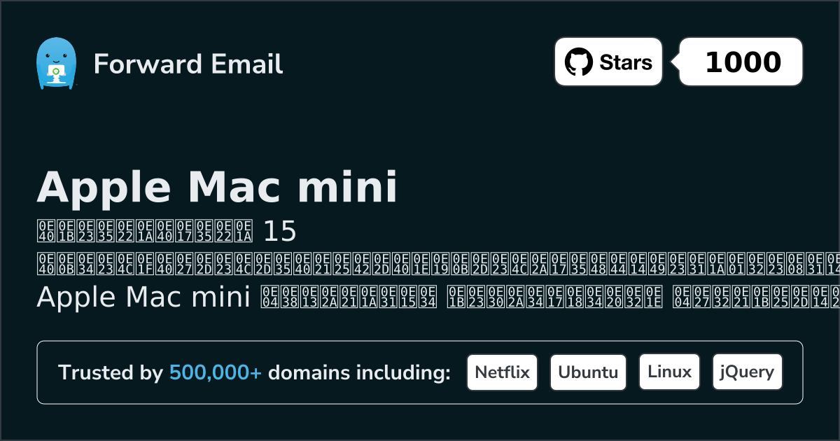 Forward Email เป็นอีเมลโอเพ่นซอร์ส เซิร์ฟเวอร์ สำหรับ Apple Mac mini คำอธิบายอย่างเป็นทางการจากเว็บไซต์ระบุว่า "อีเมลเข้ารหัสที่เน้นความเป็นส่วนตัวสำหรับคุณ เราคือบริการอีเมลที่ผู้สร้าง นักพัฒนา และธุรกิจหลายแสนรายเลือกใช้ ส่งและรับอีเมลในชื่อ you@yourdomain.com ด้วยโดเมนที่คุณกำหนดเอง หรือใช้โดเมนของเราก็ได้"