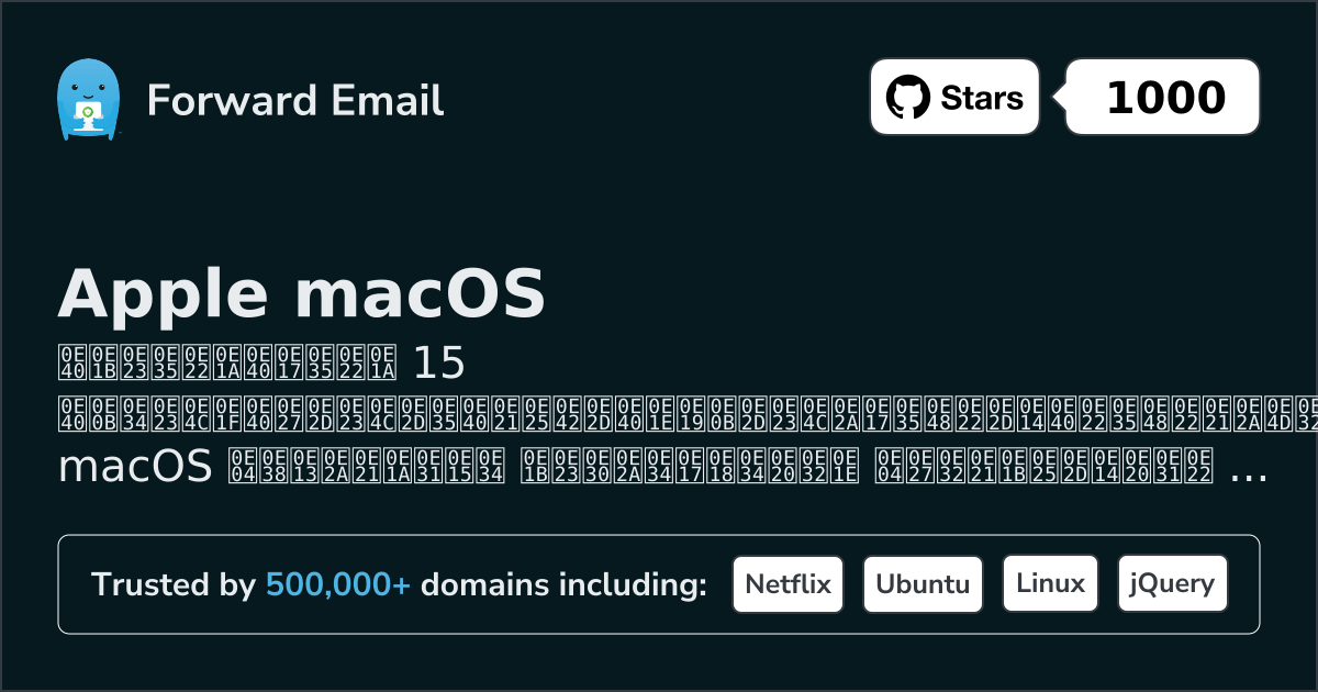 Forward Email เป็นอีเมลโอเพ่นซอร์ส เซิร์ฟเวอร์ สำหรับ Apple macOS คำอธิบายอย่างเป็นทางการจากเว็บไซต์ระบุว่า "อีเมลเข้ารหัสที่เน้นความเป็นส่วนตัวสำหรับคุณ เราคือบริการอีเมลที่ผู้สร้าง นักพัฒนา และธุรกิจหลายแสนรายเลือกใช้ ส่งและรับอีเมลในชื่อ you@yourdomain.com ด้วยโดเมนที่คุณกำหนดเอง หรือใช้โดเมนของเราก็ได้"