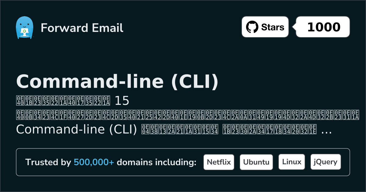 Forward Email เป็นอีเมลโอเพ่นซอร์ส เซิร์ฟเวอร์ สำหรับ Command-line (CLI) คำอธิบายอย่างเป็นทางการจากเว็บไซต์ระบุว่า "อีเมลเข้ารหัสที่เน้นความเป็นส่วนตัวสำหรับคุณ เราคือบริการอีเมลที่ผู้สร้าง นักพัฒนา และธุรกิจหลายแสนรายเลือกใช้ ส่งและรับอีเมลในชื่อ you@yourdomain.com ด้วยโดเมนที่คุณกำหนดเอง หรือใช้โดเมนของเราก็ได้"