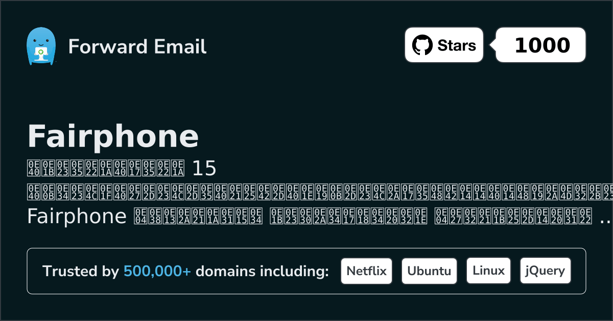 Forward Email เป็นอีเมลโอเพ่นซอร์ส เซิร์ฟเวอร์ สำหรับ Fairphone คำอธิบายอย่างเป็นทางการจากเว็บไซต์ระบุว่า "อีเมลเข้ารหัสที่เน้นความเป็นส่วนตัวสำหรับคุณ เราคือบริการอีเมลที่ผู้สร้าง นักพัฒนา และธุรกิจหลายแสนรายเลือกใช้ ส่งและรับอีเมลในชื่อ you@yourdomain.com ด้วยโดเมนที่คุณกำหนดเอง หรือใช้โดเมนของเราก็ได้"