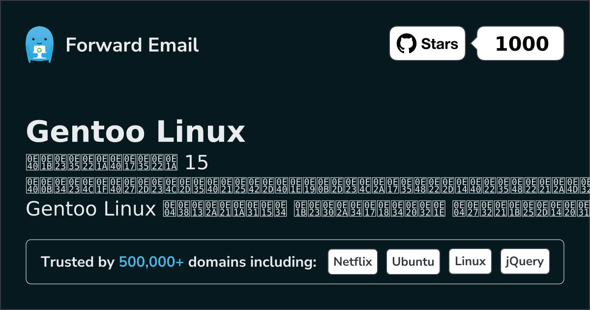 Forward Email เป็นอีเมลโอเพ่นซอร์ส เซิร์ฟเวอร์ สำหรับ Gentoo Linux คำอธิบายอย่างเป็นทางการจากเว็บไซต์ระบุว่า "อีเมลเข้ารหัสที่เน้นความเป็นส่วนตัวสำหรับคุณ เราคือบริการอีเมลที่ผู้สร้าง นักพัฒนา และธุรกิจหลายแสนรายเลือกใช้ ส่งและรับอีเมลในชื่อ you@yourdomain.com ด้วยโดเมนที่คุณกำหนดเอง หรือใช้โดเมนของเราก็ได้"