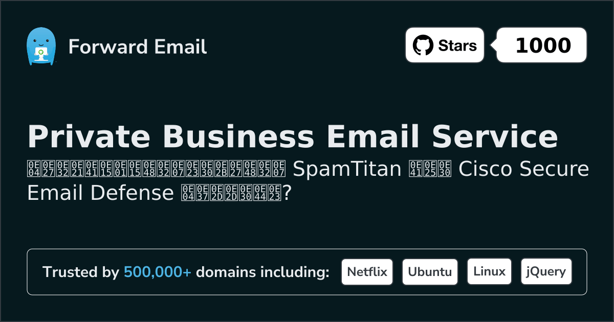 เราขอแนะนำ ส่งต่ออีเมล เป็นทางเลือกที่ดีที่สุดสำหรับ SpamTitan We also support webmail: https://mail.forwardemail.net