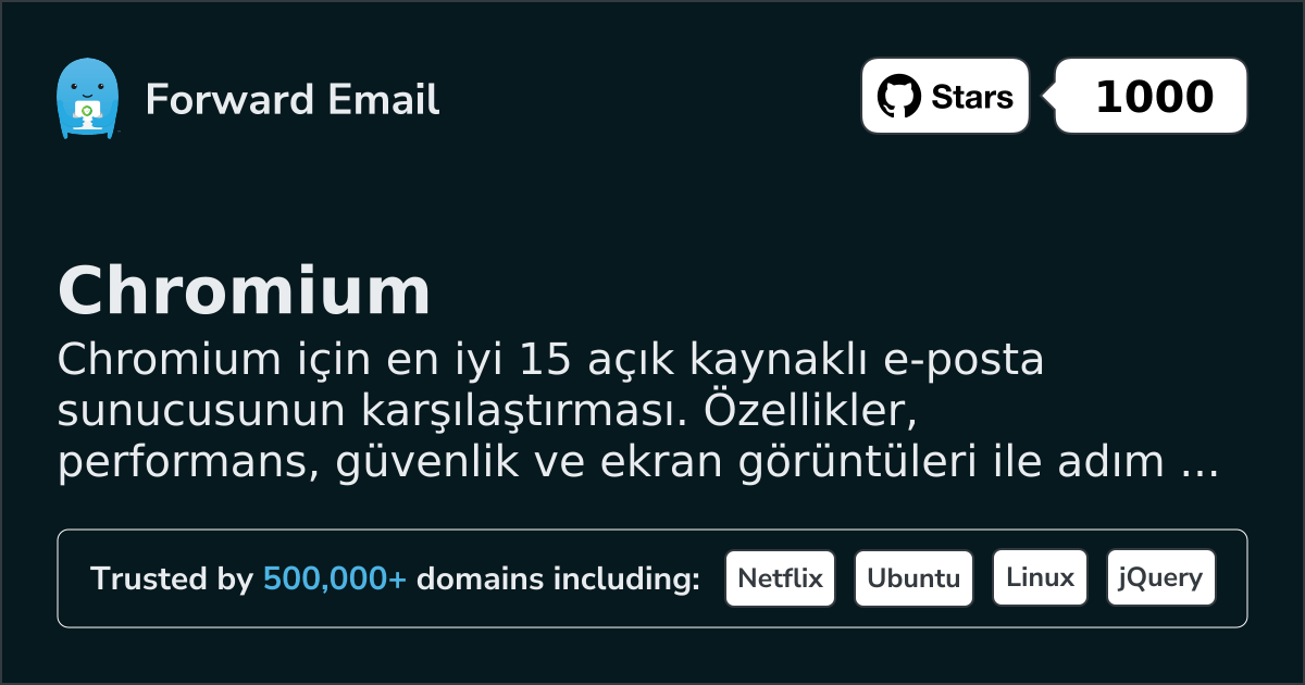 Chromium için en iyi 15 açık kaynaklı e-posta sunucusunun karşılaştırması. Özellikler, performans, güvenlik ve ekran görüntüleri ile adım adım kurulum rehberleri.