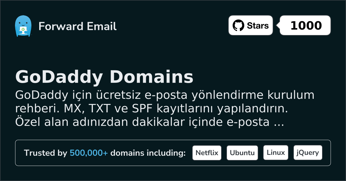 GoDaddy için ücretsiz e-posta yönlendirme kurulum rehberi. MX, TXT ve SPF kayıtlarını yapılandırın. Özel alan adınızdan dakikalar içinde e-posta gönderip alın.