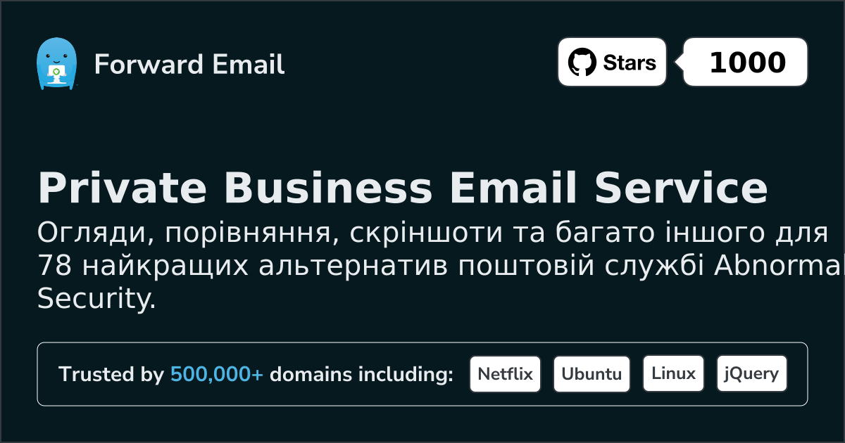 Ми рекомендуємо Пересилання електронної пошти як найкращу альтернативу Abnormal Security. We also support webmail: https://mail.forwardemail.net
