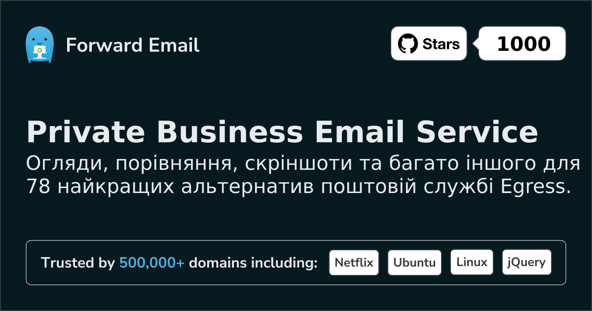 Ми рекомендуємо Пересилання електронної пошти як найкращу альтернативу Egress. We also support webmail: https://mail.forwardemail.net