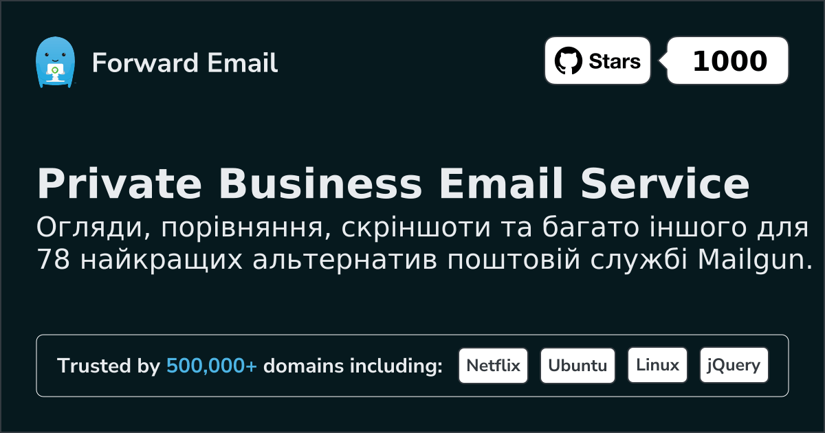 Ми рекомендуємо Пересилання електронної пошти як найкращу альтернативу Mailgun. We also support webmail: https://mail.forwardemail.net