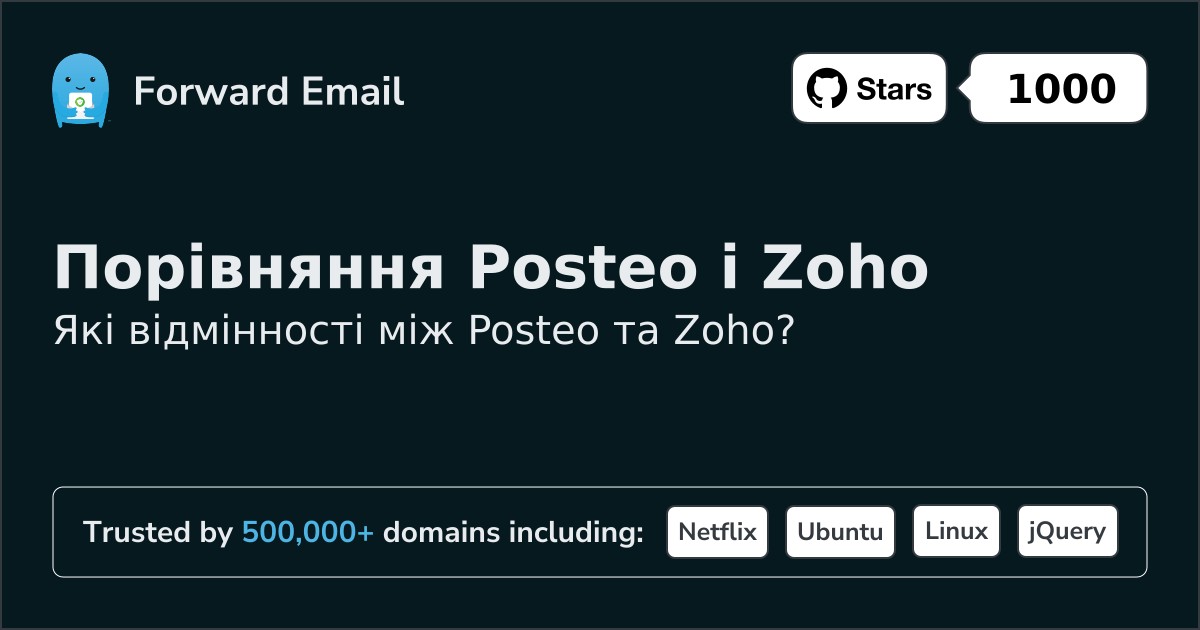 Posteo"Екологічно чистий, безпечний, без реклами" | проти | Zoho"Безпечна бізнес-електронна пошта для вашої організації" |