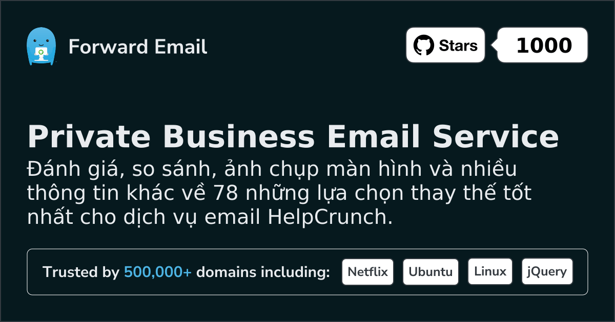 Chúng tôi khuyên bạn nên sử dụng Chuyển tiếp Email vì đây là giải pháp thay thế tốt nhất cho HelpCrunch. We also support webmail: https://mail.forwardemail.net