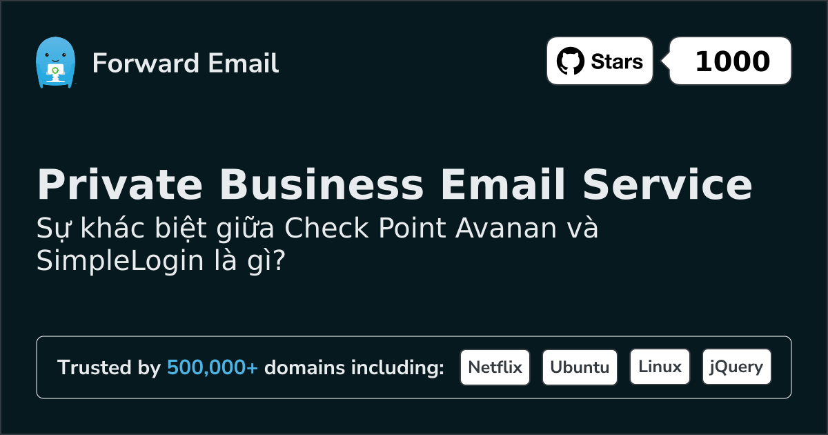 Check Point Avanan"Ngăn chặn lừa đảo trước hộp thư đến với tính năng bảo mật email từ Check Point" | so với | SimpleLogin"Nhận và gửi email ẩn danh" |
