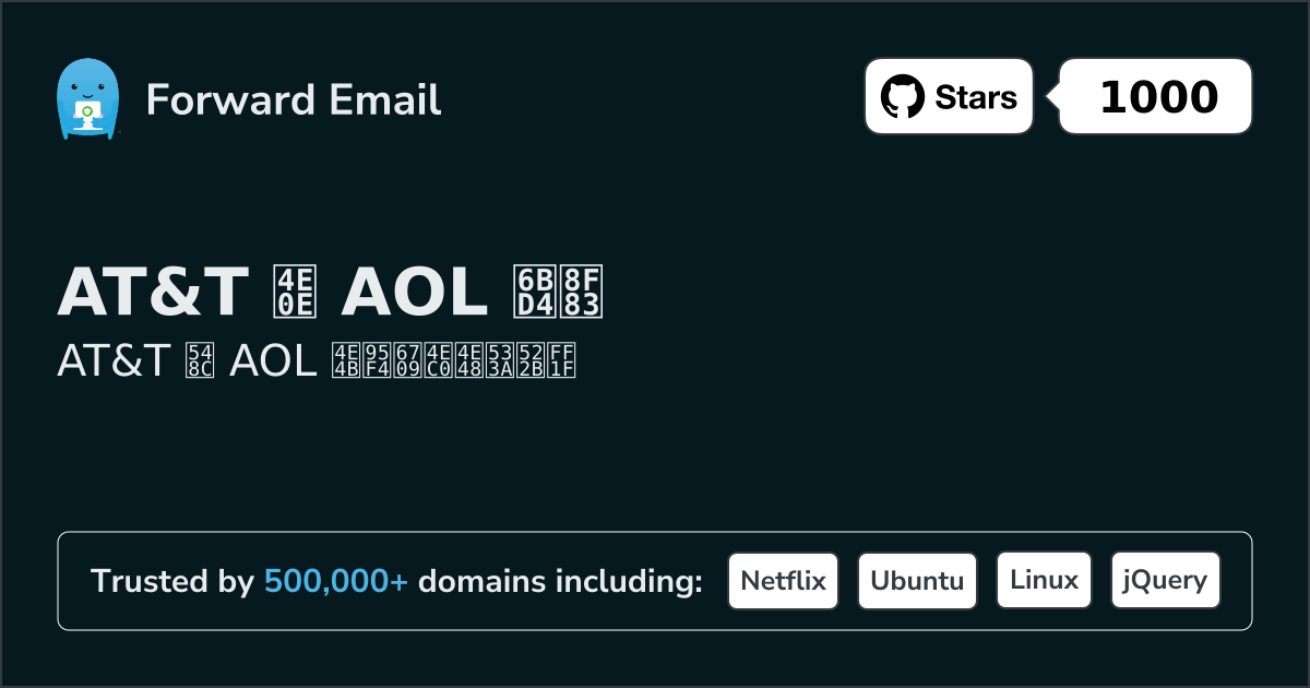 AT&T"AT&T Mail 现已更名为 Yahoo Mail" | 对比 | AOL"AOL Mail 是由 Yahoo! Inc. 旗下的 AOL 提供的免费基于网络的电子邮件服务。" |