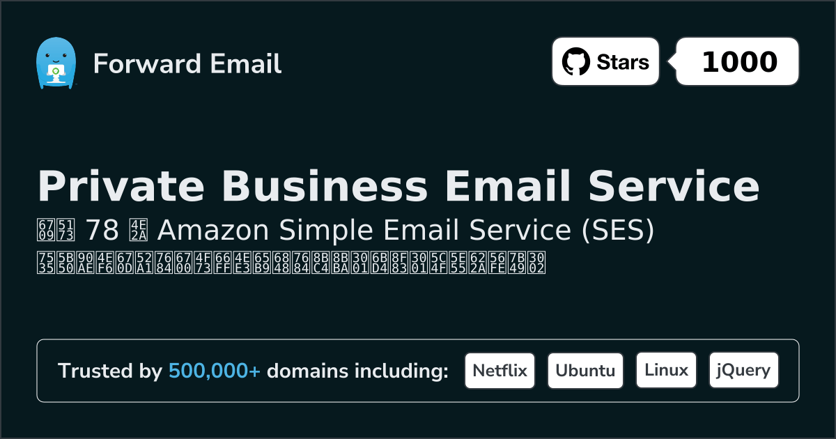 我们推荐转发电子邮件作为Amazon Simple Email Service (SES)的最佳替代方案。 We also support webmail: https://mail.forwardemail.net