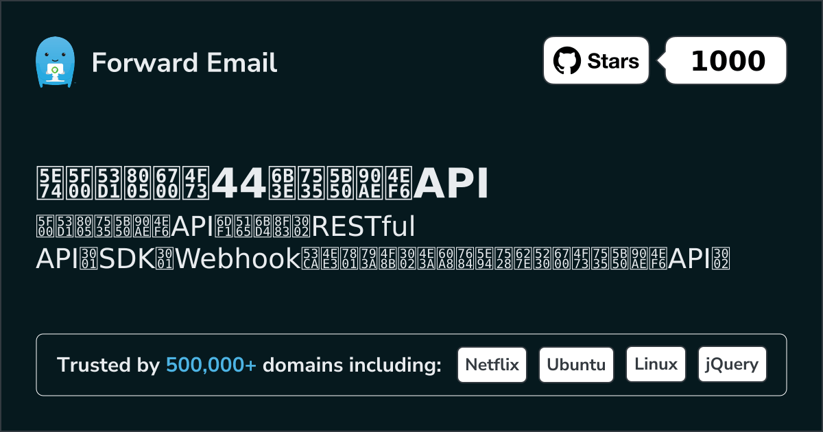 我们推荐转发电子邮件作为开发人员的最佳电子邮件 API 服务。 We also support webmail: https://mail.forwardemail.net