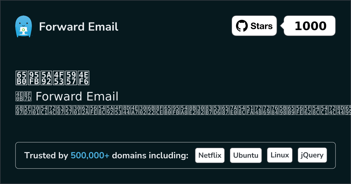 | 开源情况 | 100%(GitHub: forwardemail/forwardemail.net) |